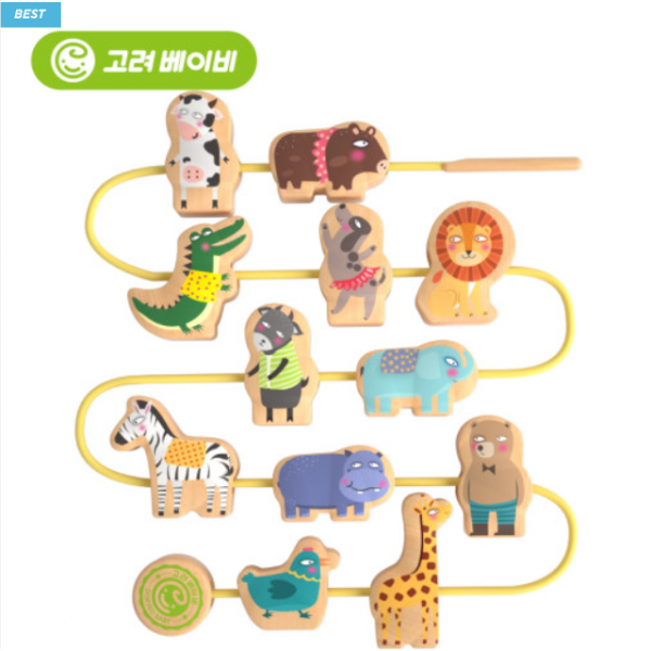 고려베이비 동물 실꿰기 놀이 소근육 발달 두돌 아기 유아 장난감 구슬꿰기 원목 교구